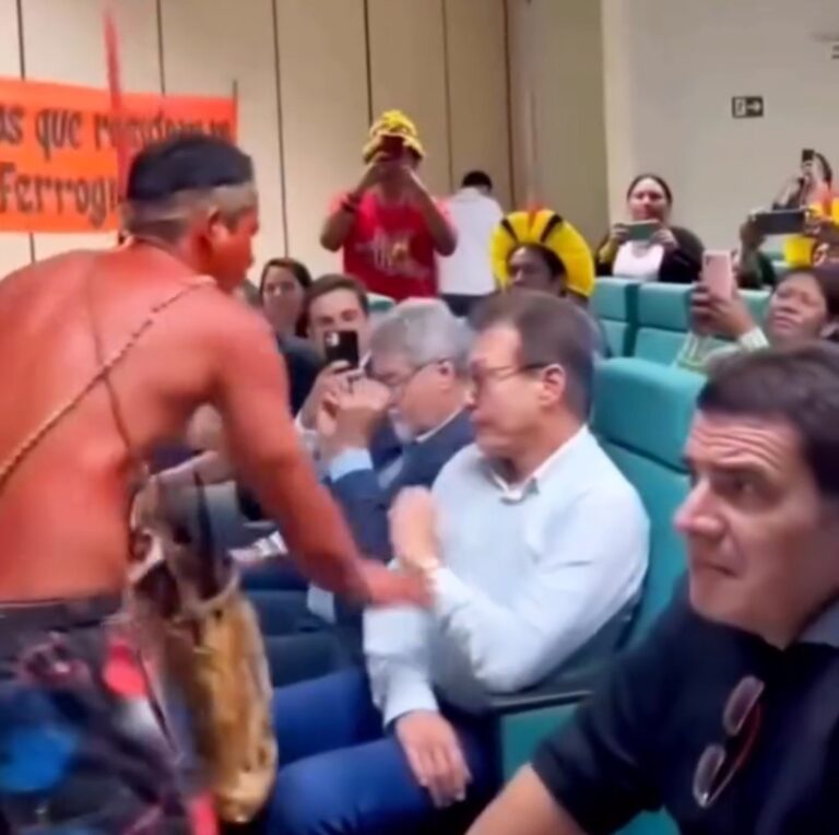É #FAKE que vídeo em que indígena pinta rostos de participantes de evento tenha sido gravado durante a COP30 Reprodução Circula nas
