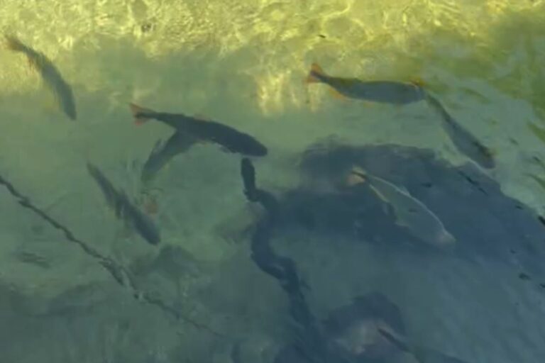 VÍDEO: pescadora é surpreendida com bote de sucuri em rio de águas cristalinas
