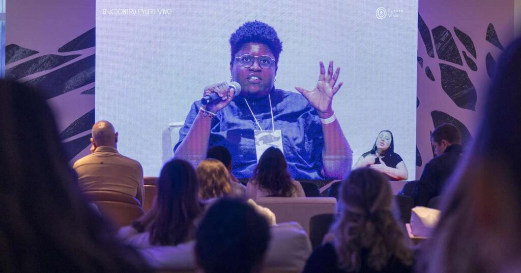 Nina da Hora falou sobre os paradoxos da tecnologia com Caio Vieira Machado e Daniela Lerario no Encontro Futuro Vivo, nesta terça-feira, 26