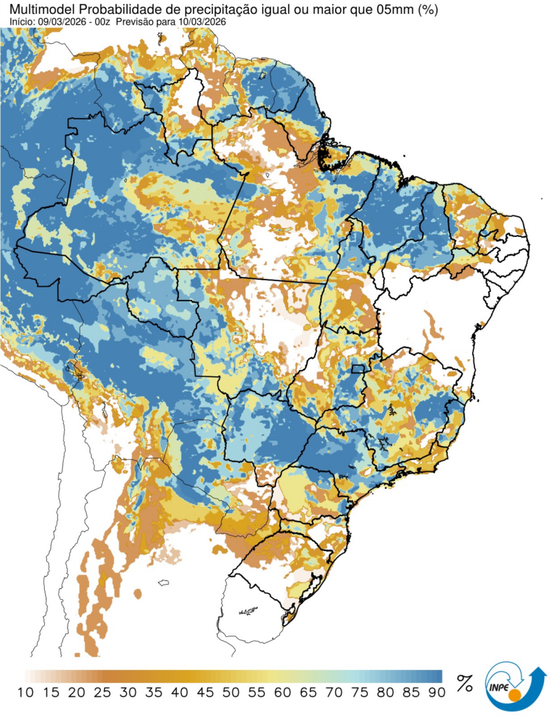 Segundo o instituto, a previsão indica chuva superior a 60 milímetros por hora ou acima de 100 milímetros por dia, volumes considerados muito elevados e capazes de provocar transtornos significativos.