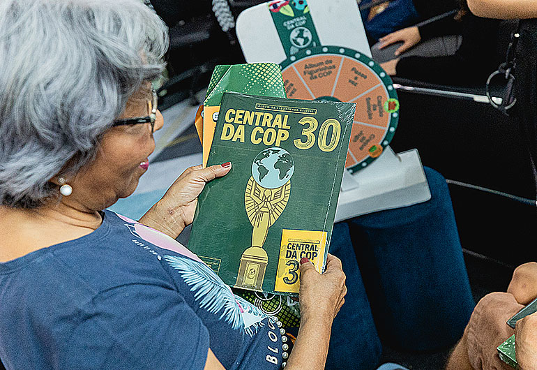 • Álbum de figurinhas da Central da COP – mostra as COPs mais importantes, os protagonistas da luta socioambiental e o que está em jogo na COP30.