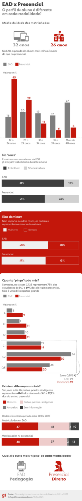 qual modalidade tem alunos mais velhos? E mais ricos? Infográfico mostra diferença de perfis